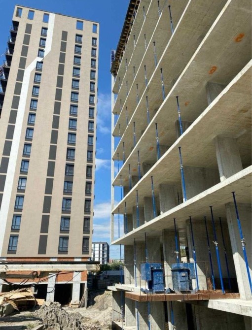 Будинок монолітно-каркасний, стіни з керамоблоку, утеплений мінеральною ватою. У квартирах встановлені панорамні вікна та броньовані двері, всі комунікації заведені в квартиру, також є стяжка всюди, окрім санвузлів.