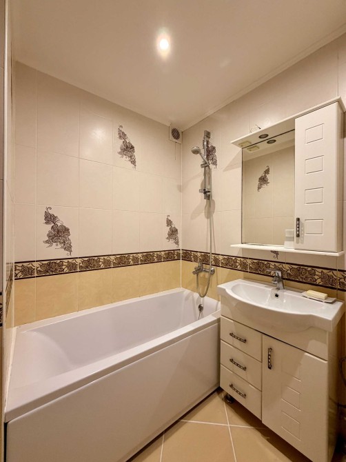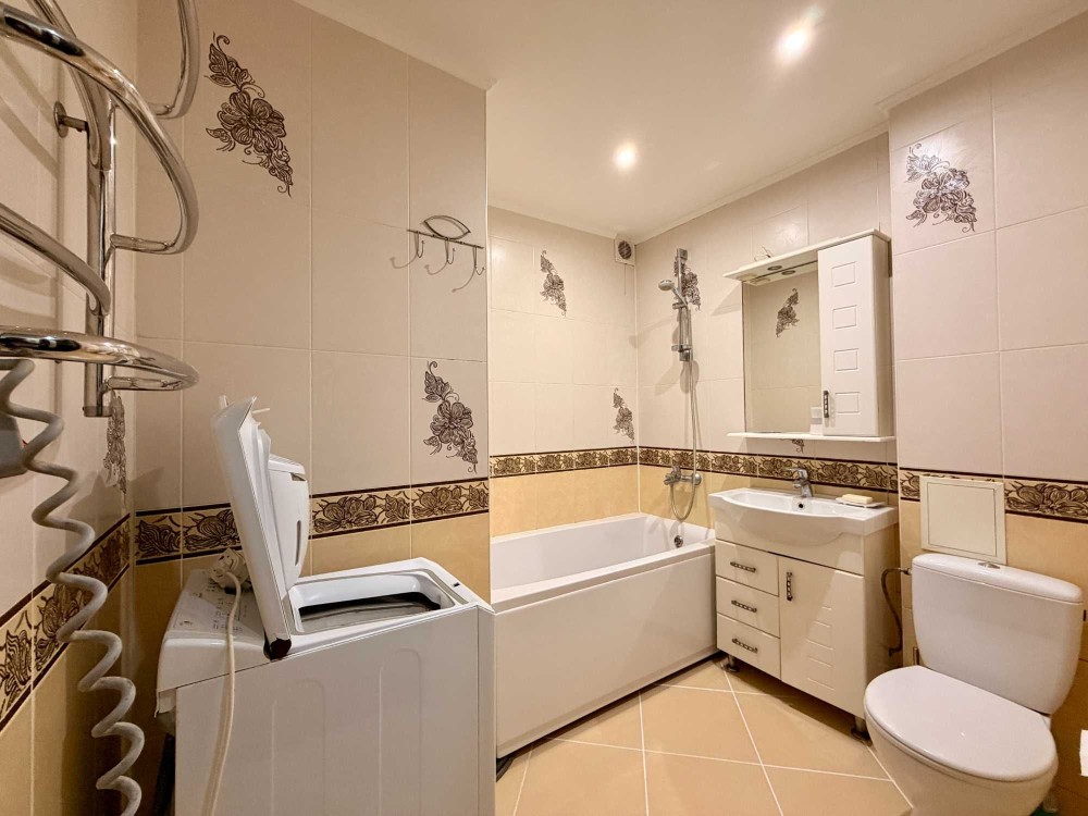 Квартира має приємний сучасний інтер’єр, продуманий до деталей: затишні кімнати та функціональна ванна кімната.