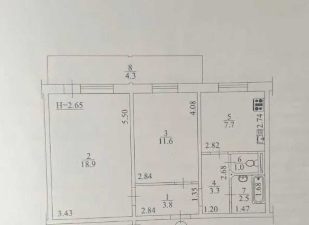 • Площа кухні 8 м2