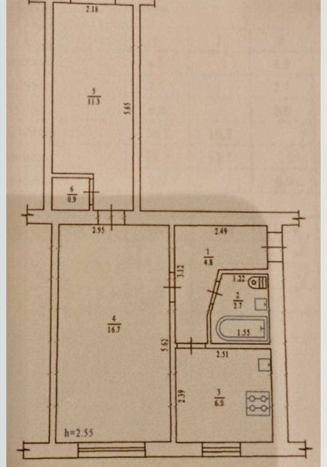 • Площа кухні 6.6 м2