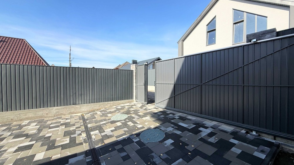 - огорожа з парканом (профлист + колони з декор. блоків) з бетонним фундаментом по периметру всієї ділянки;