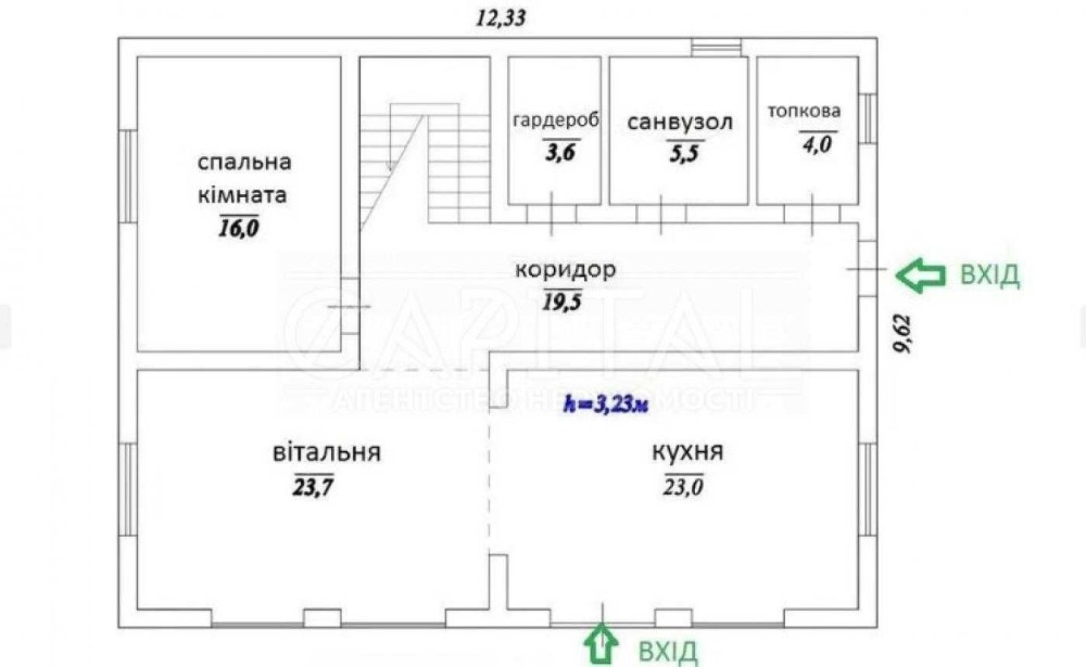 Висота стелі - 3,2-4,2м