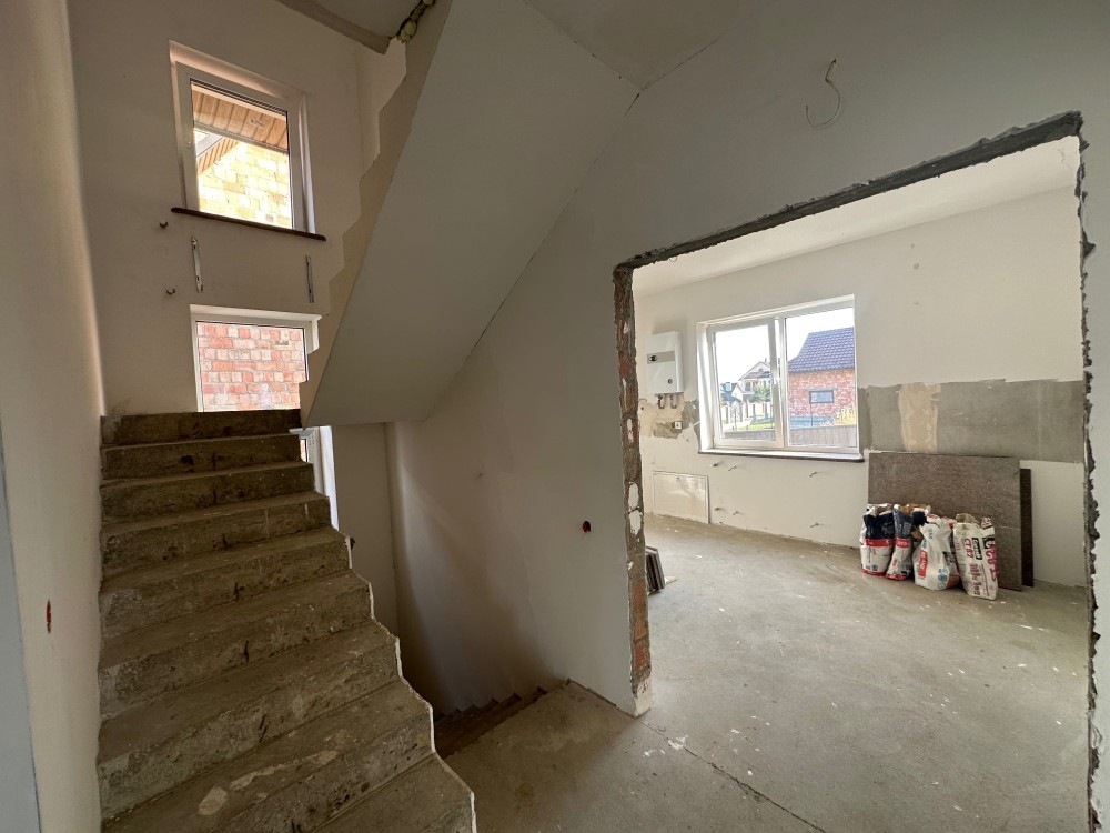Будинок підготовлений до фінішних робіт. Гранітні плити для сходової частини будинку залишаються.