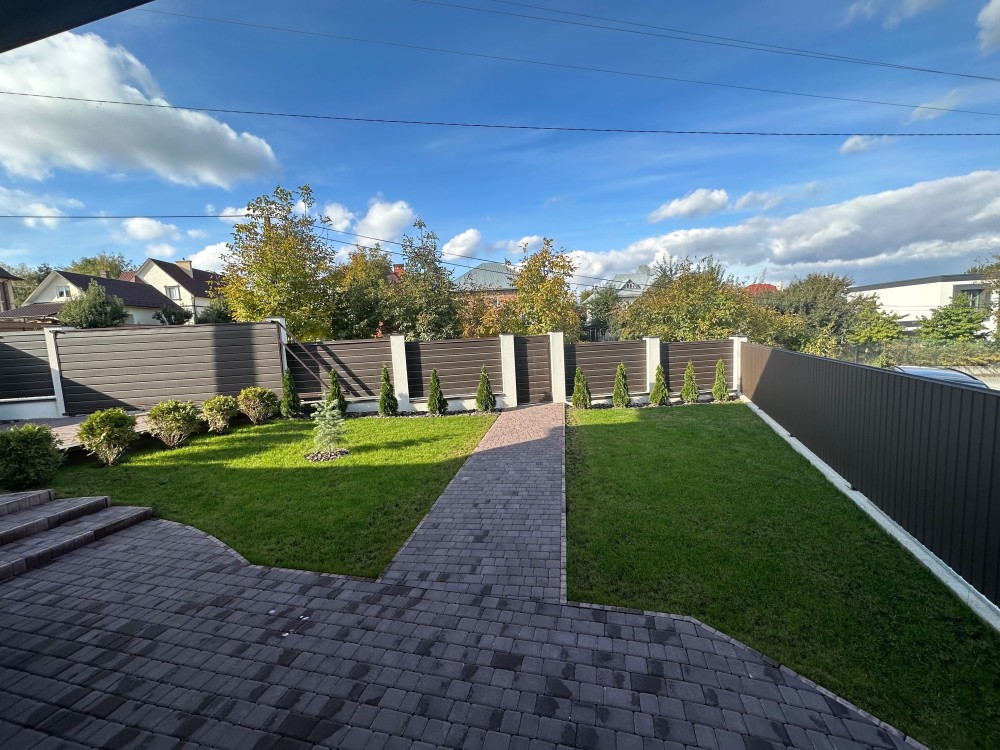 Облаштоване подвір'я, насаджені молоді дерева.