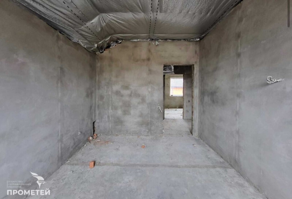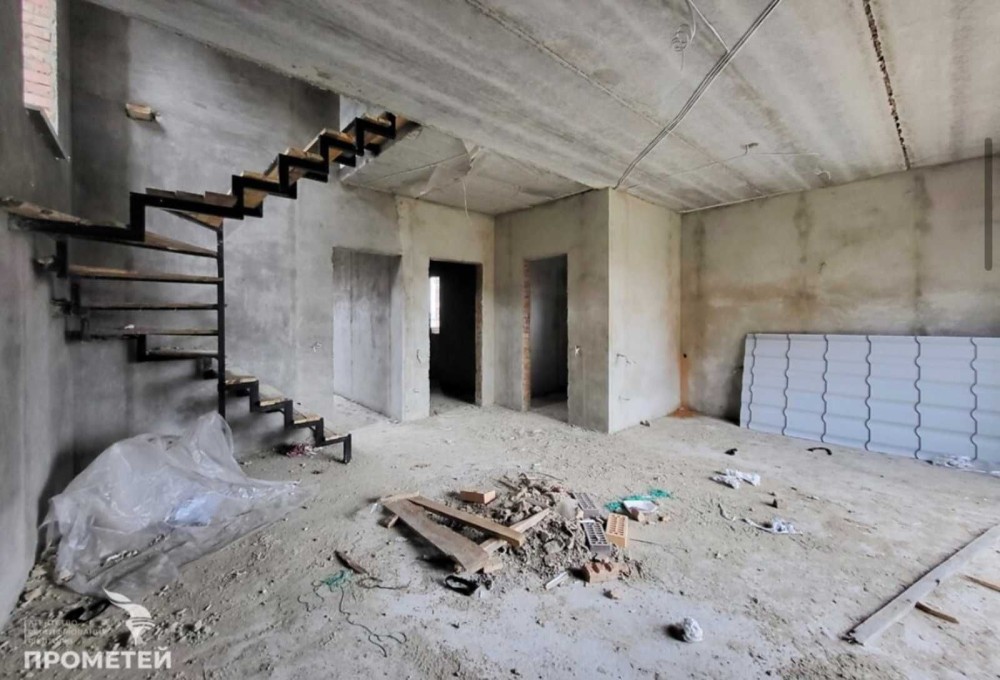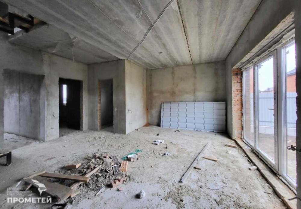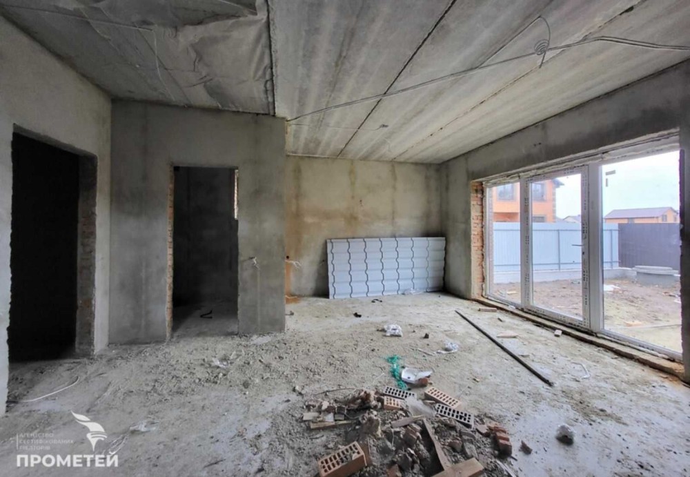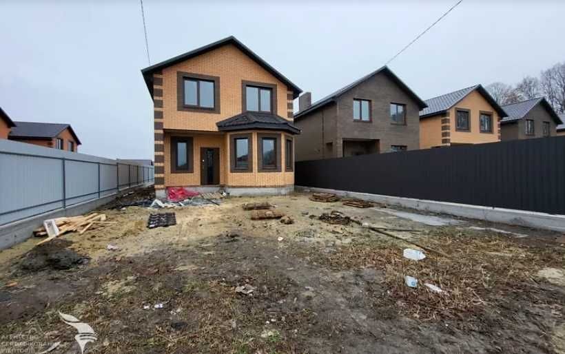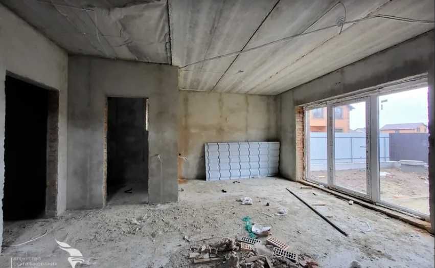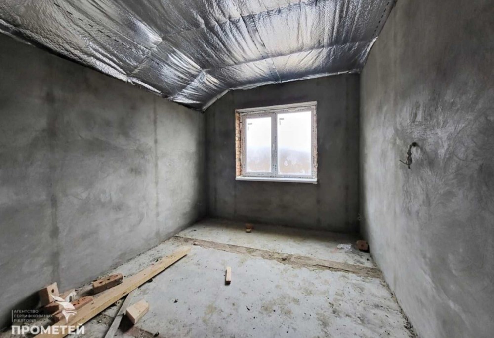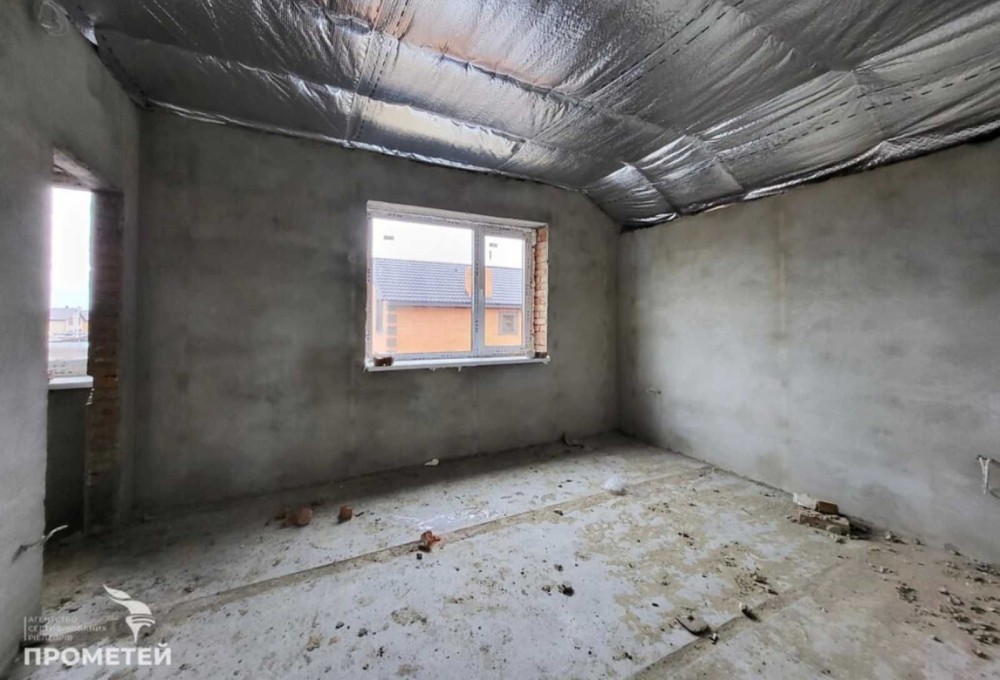 Встановлено двоконтурний котел, батареї, теплу підлогу (в кухні, коридорі, санвузлі). Зроблено розводку води, електрики, стяжку підлоги, чистову шпаклівку. До будинку йде 4 соток землі, викопана вигрібна яма, колодязь, заведено газ та 5 кіловат світла. В продажу є будинок без Еркера (частина будинку, яка у вигляді виступу виходить за межі фасаду) - 85000 дол.
