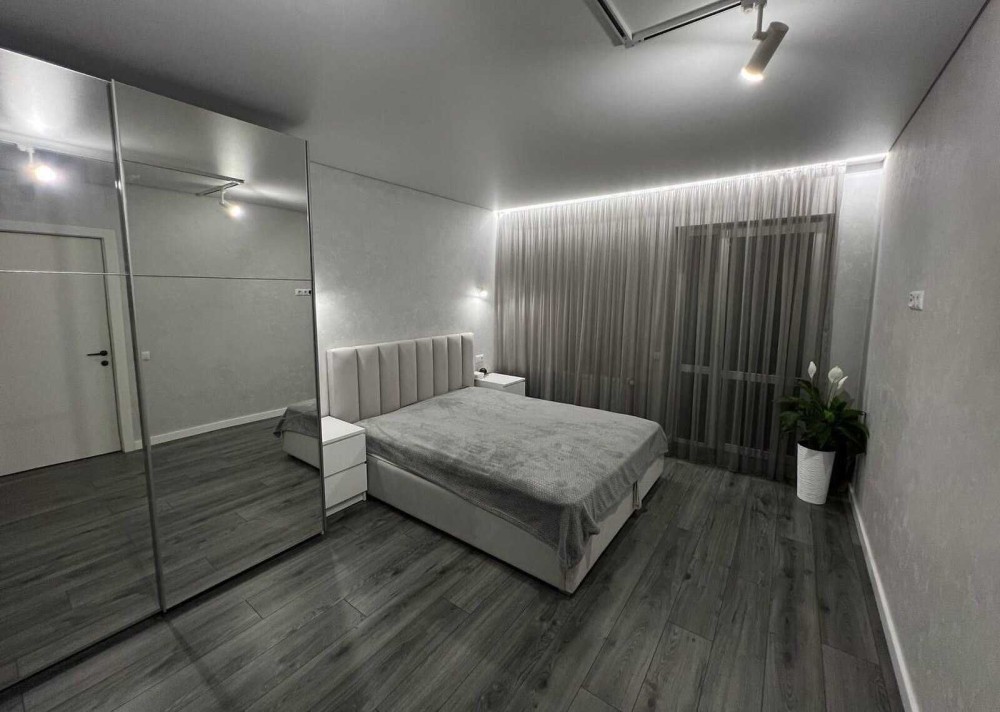 Меблі в кімнатах: великі ліжка з підйомними механізмами, великі шафи-купе повністю дзеркальні