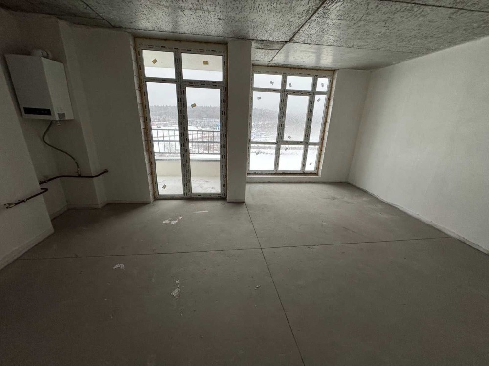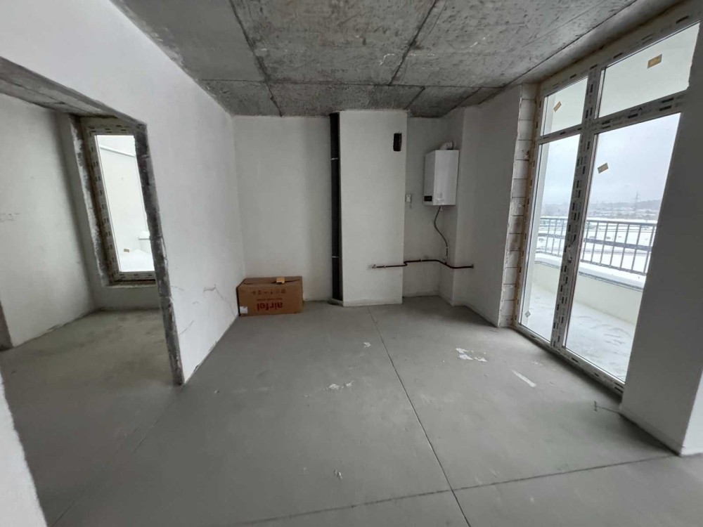 Продається 2-рівнева 2-кімнатна квартира без ремонту на 7 поверсі з двома терасами у сучасному будинку.