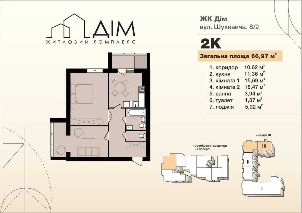 • Загальна площа 67 м2