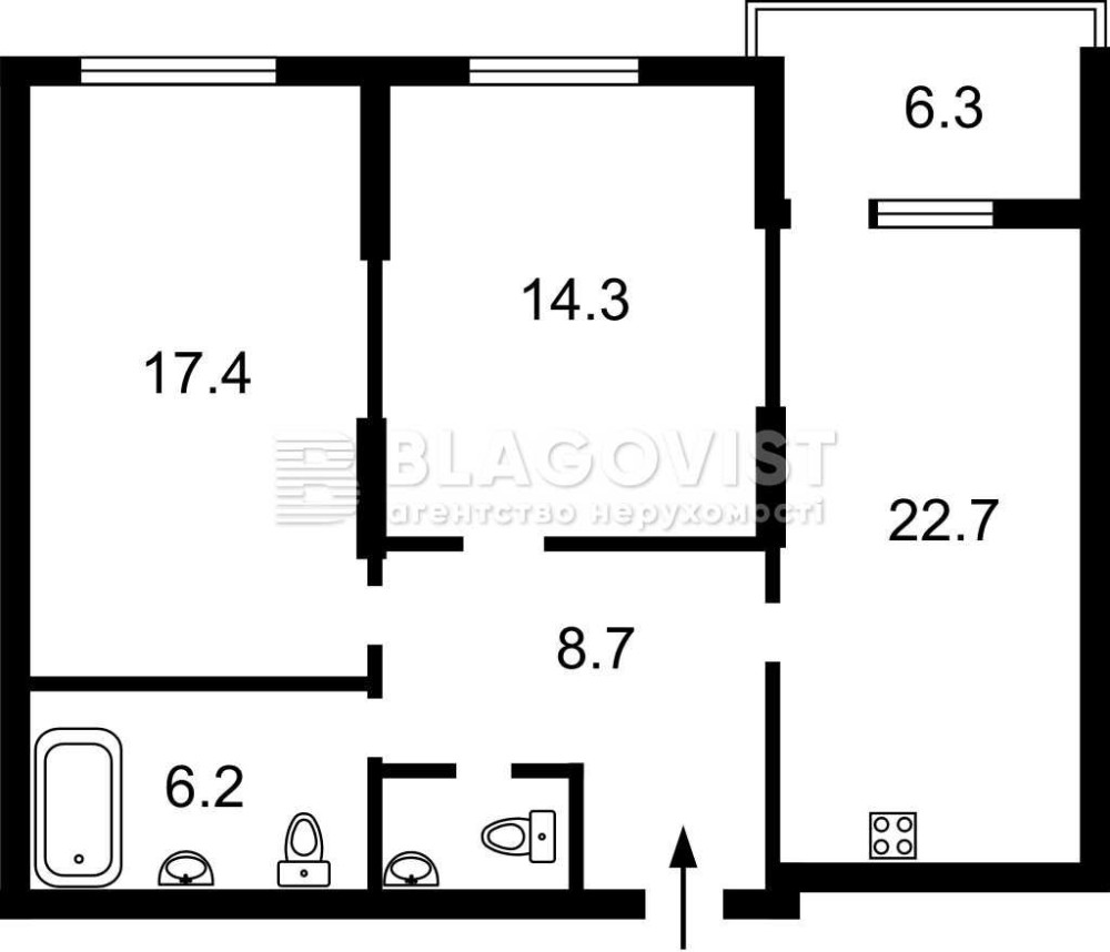 • Загальна площа 77.1 м2
