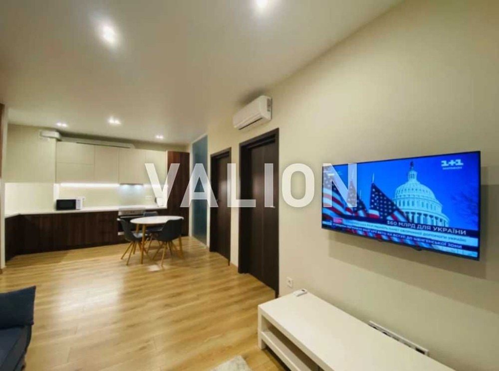 2к.кв. на 16 поверсі, загальна площа 69м2, дві окремих кімнати плюс вітальня-кухня, суміжний санвузол, гардеробна. Сучасний ремонт, великі панорамні вікна із металопластику, меблі, побутова техніка.