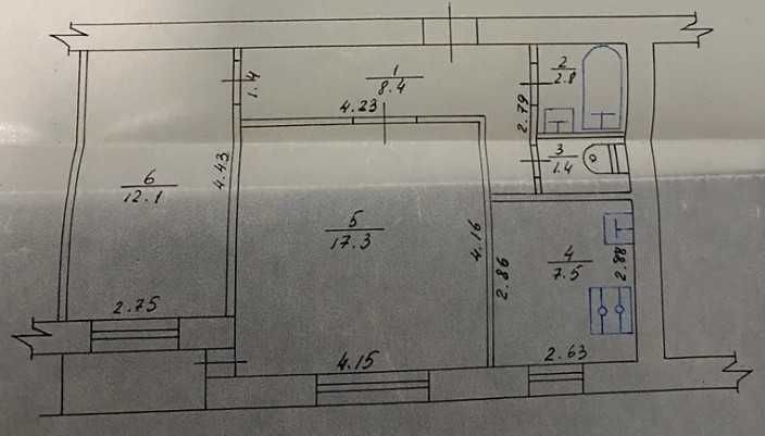 • Площа кухні 7.4 м2