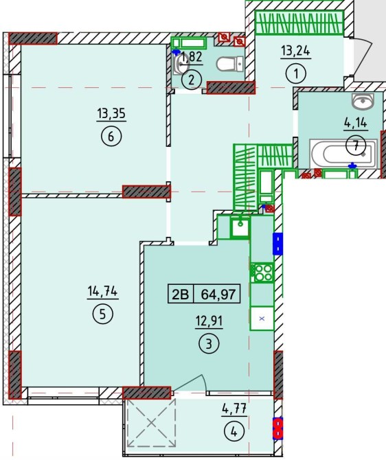 • Загальна площа 65 м2