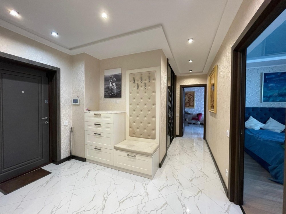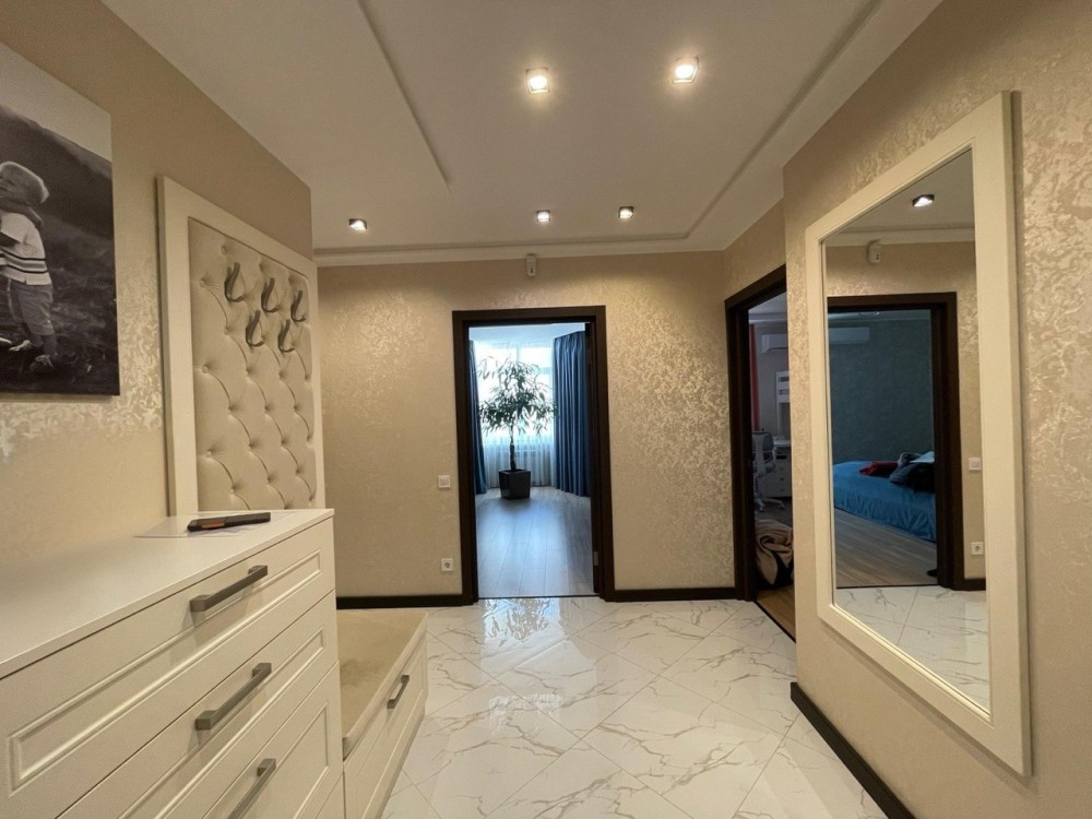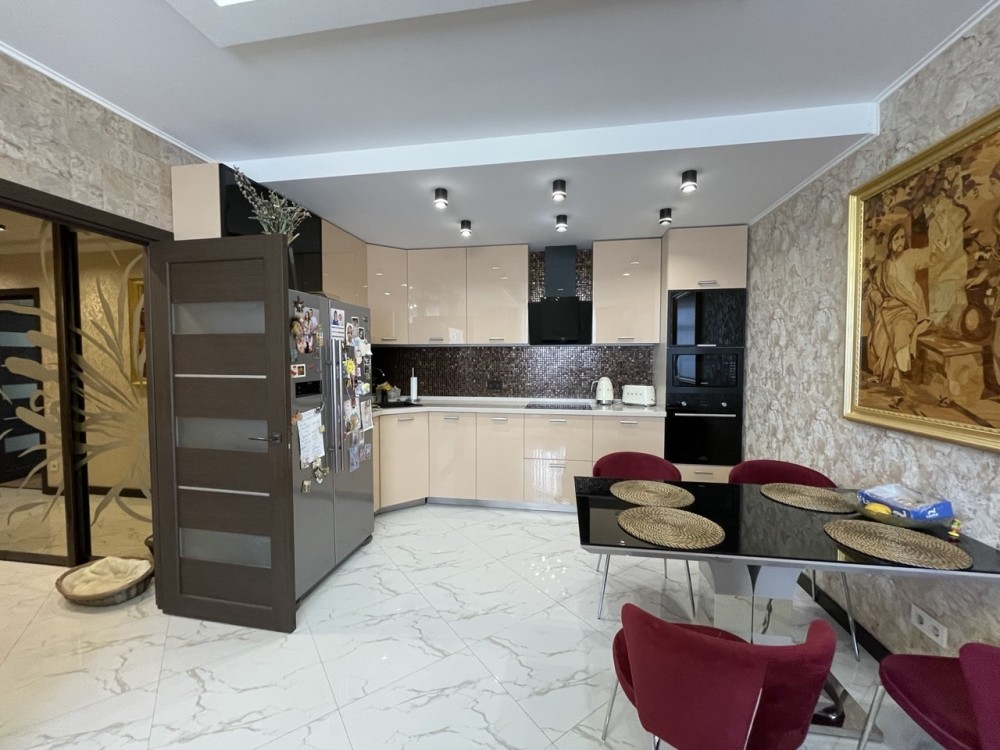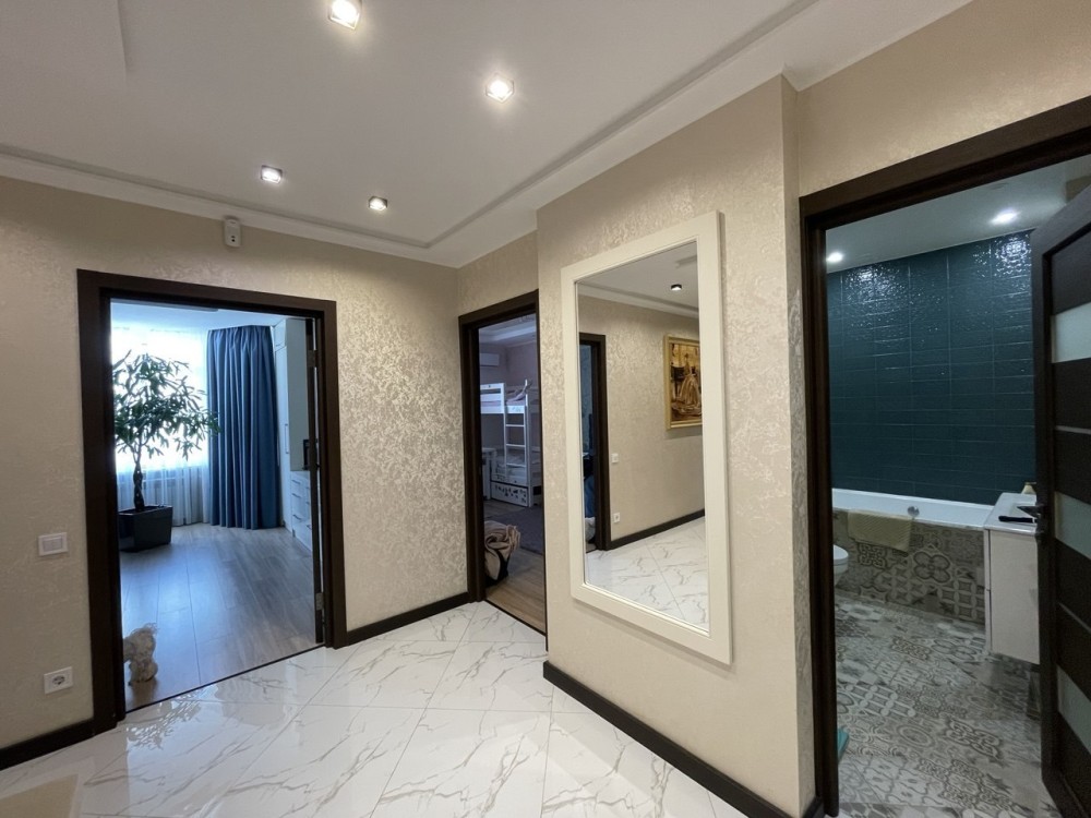 У квартирі виконано якісний сучасний ремонт із використанням дорогих матеріалів: