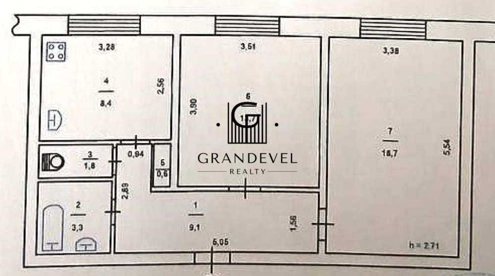 Загальна площа - 55, 6 м², житлова - 32,4 м², кухня - 8,4 м²