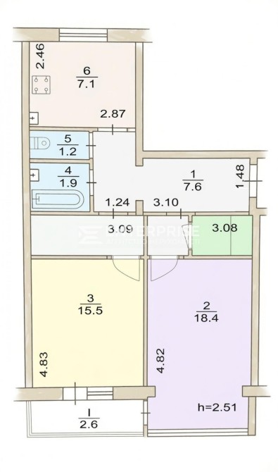 • Загальна площа 54.3 м2