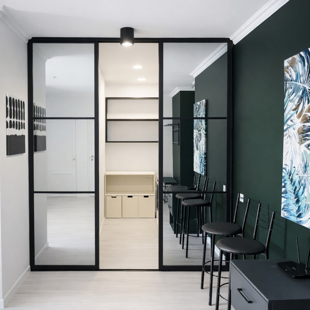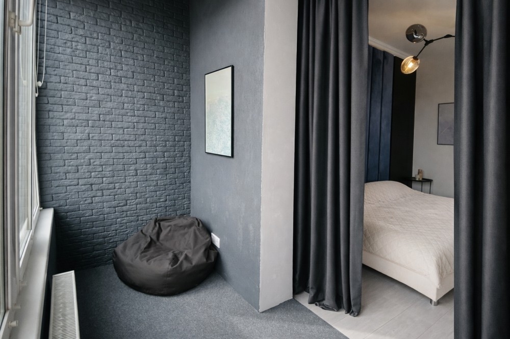 Спальня об'єднана з панорамною лоджією – ідеальне місце для робочої зони (home office), зони відпочинку або лаунж-простору.