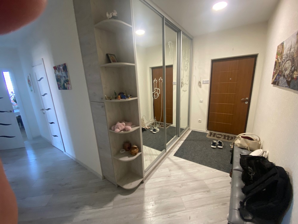 У квартирі дві великі кімнати також є засклена лоджія та великий балкон, було невелике перепланування обʼєднали санвузол з ванною. В квартирі є абсолютно все для комфортного проживання. Вбудовані меблі, виготовлені на індивідуальне замовлення, шкаф/кладова на балконі, простора шафа-купе, зручна та вмістка кухня. Всі меблі виготовлялись з урахуванням максимальної раціональності, тому, будьте впевнені, в цьому житлі досить місця для зберігання.