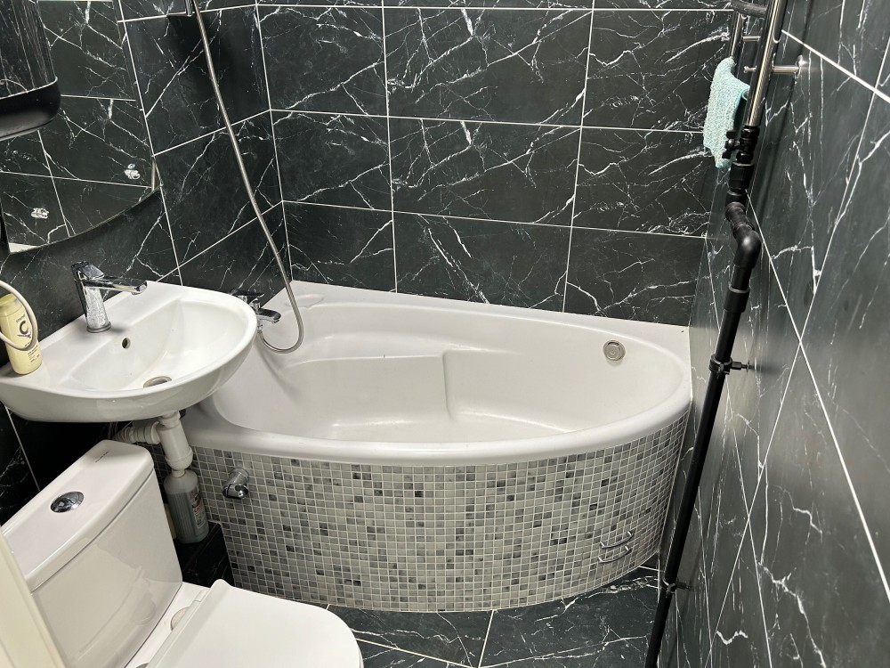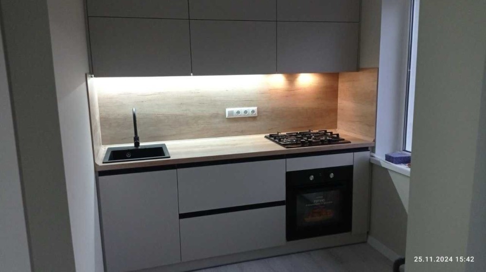 Нова кухня (МДФ) та техніка: духова шафа, газова варильна поверхня (Beko), холодильник (Samsung), пральна машина (Whirpool), інверторний кондиціонер (Midea), бойлер 80 л (Thermex), кутовий диван, двоспальне ліжко. Меблі можемо залишити, а можемо забрати за домовленістю.