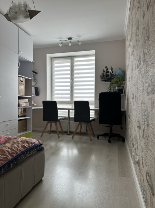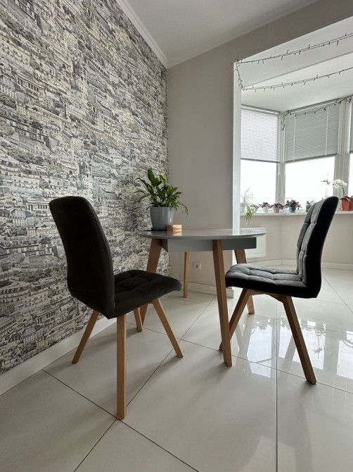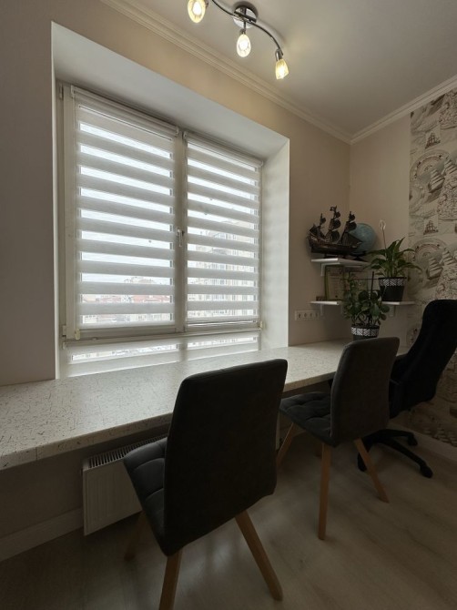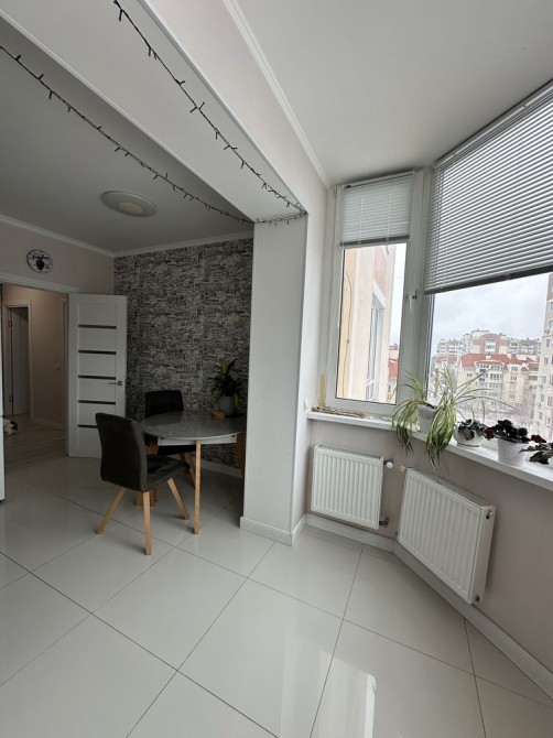 Дві окремі світлі кімнати забезпечують комфортний простір для життя. Два санвузли — зручність для щоденного користування. Балкон облаштований під робочу або відпочинкову зону. Завдяки панорамним вікнам квартира наповнена природним світлом протягом усього дня.