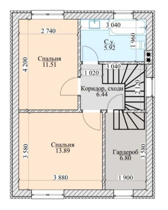 2 поверх - 3 спальні, коридор з люком виходу на горище та просторий санвузол.