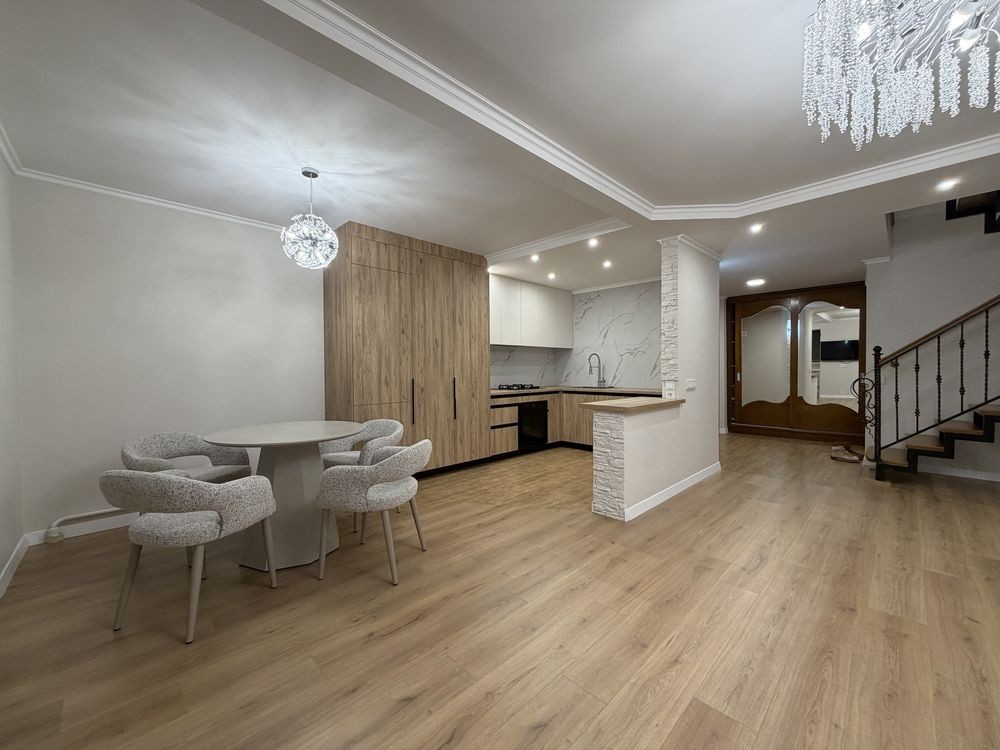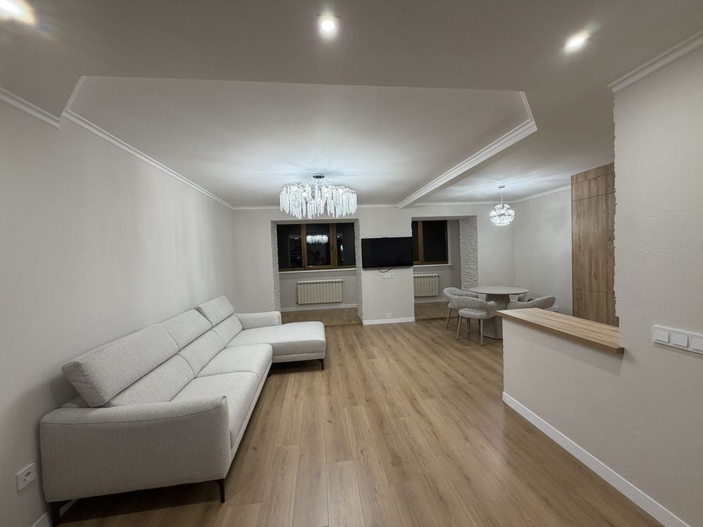 Загальна площа — 94 м². Квартира з якісним сучасним ремонтом, повністю готова до проживання.