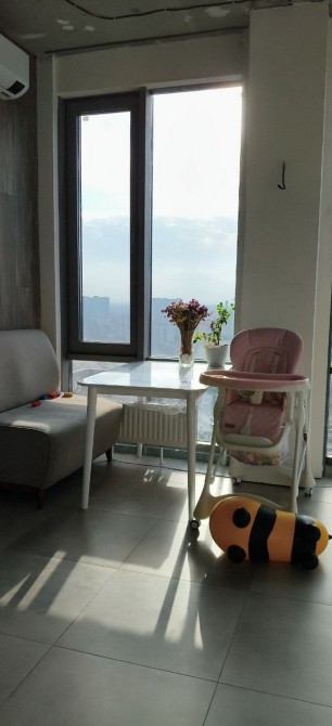 Простора та світла квартира на 31-му поверсі сучасного житлового комплексу з неймовірним панорамним видом на місто. З вікон відкривається краєвид на ВДНГ, Голосіївський парк, центр Києва та «Батьківщину-Мати». Двостороннє планування забезпечує максимум природного світла та комфорт у будь-яку пору року.
