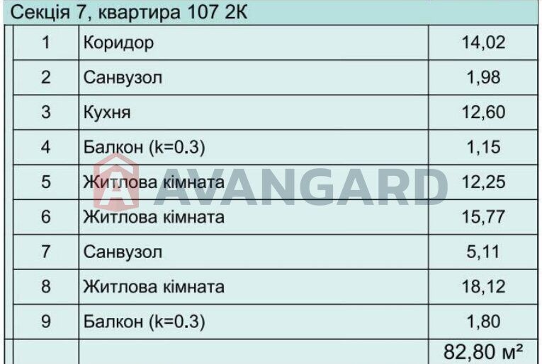 • Загальна площа — 82,8 м²