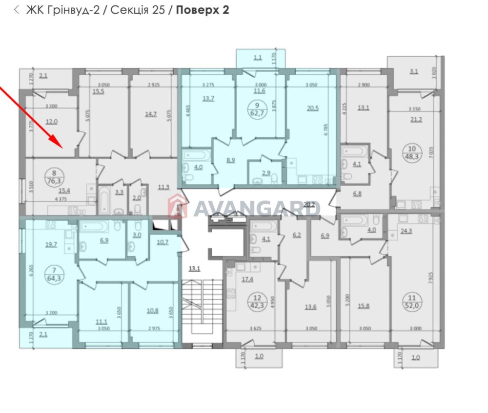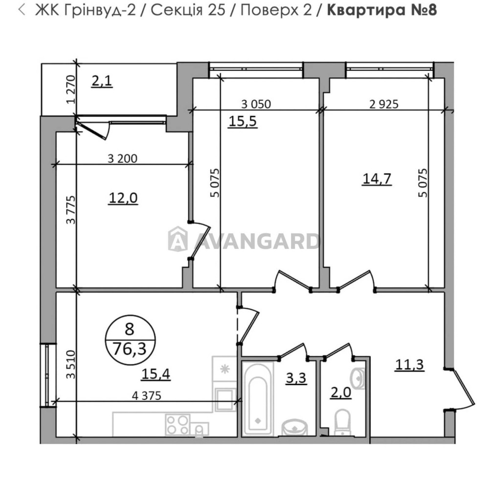 Площа квартири: 76.3 м