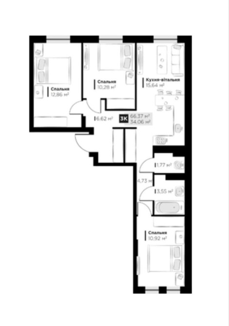 • Загальна площа 66.37 м2