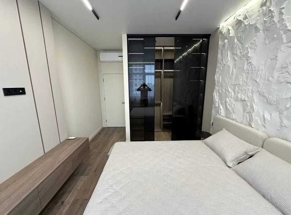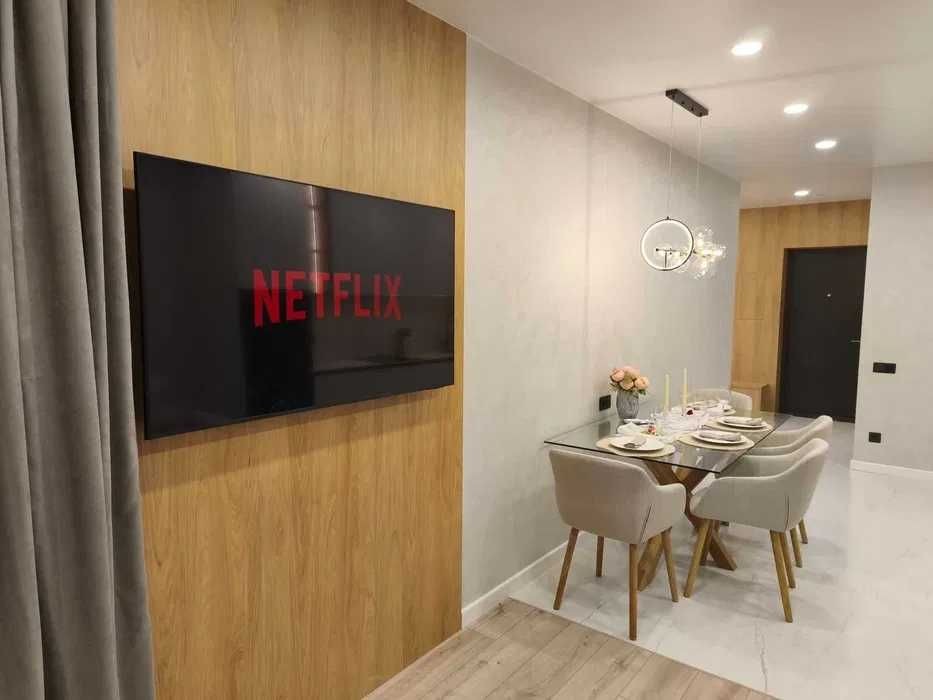 Сучасна простора квартира з якісним дорогим ремонтом, повністю укомплектована меблями та технікою: кондиціонер, пральна та сушильна машини, посудомийка.