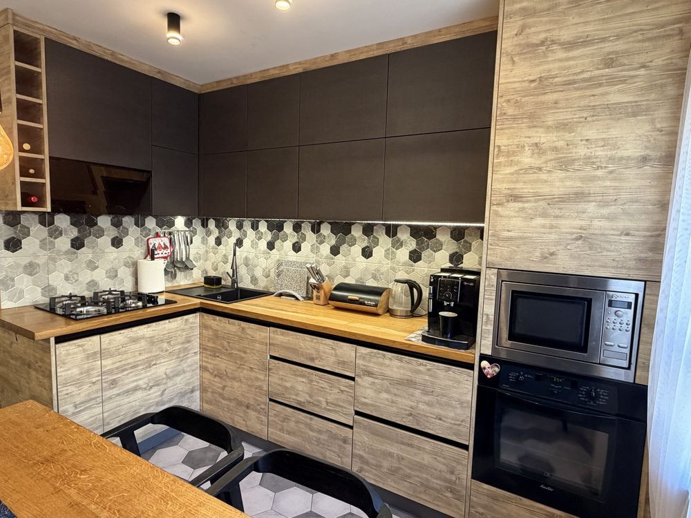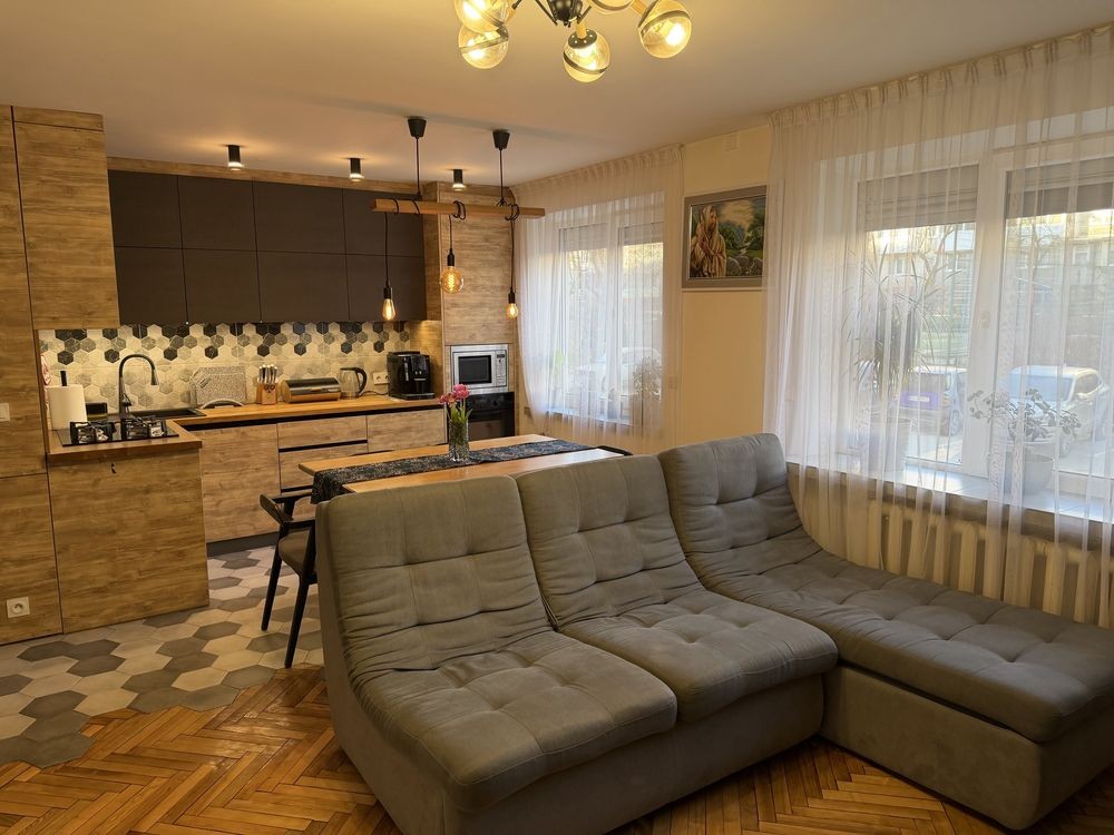 У квартирі виконано зручне перепланування: дві окремі кімнати та простора кухня-вітальня, роздільний санвузол. Встановлена сучасна кухня з якісних матеріалів.
