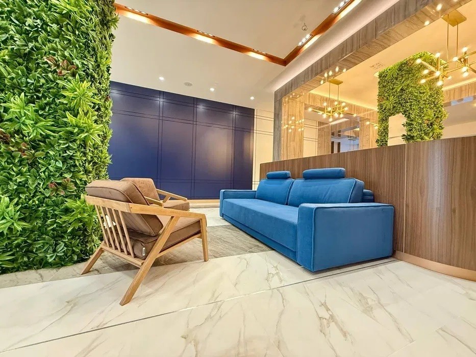 Стильна сучасна архітектура комплексу та панорамні вікна відкривають чудові краєвиди на центр міста, паркові зони, монумент «Батьківщина-Мати» та мальовничі схили Дніпра.