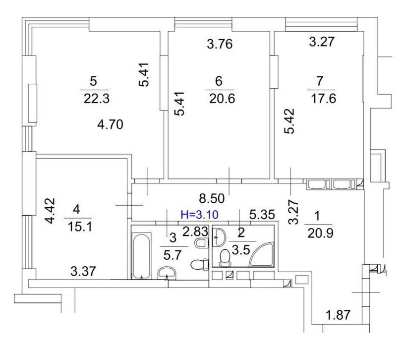 • Трикімнатна