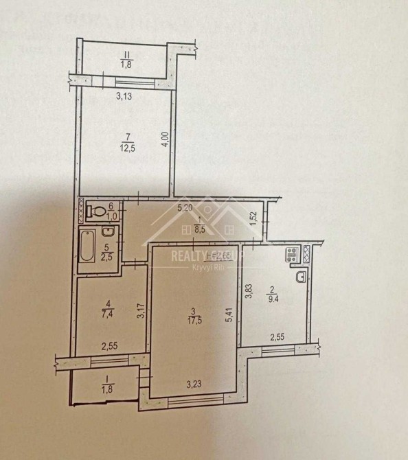 • Площа кухні 9.5 м2