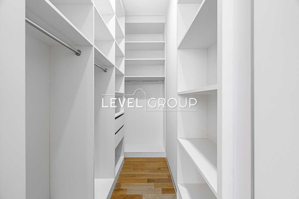 Всі меблі робилися на замовлення (робоча поверхня кухні камінь, у кожній кімнаті великі шафи, майстер-спальня з власним санвузлом та гардеробною кімнатою.