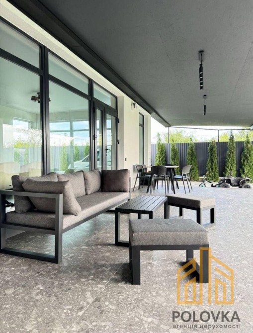 Особливу увагу приділено комфорту: величезна тераса зі стіною, виведеною під гриль-зону з гарячою та холодною водою, технічне приміщення, навіс для авто, автоматичні ворота, кондиціонер, відеоспостереження. Ділянка доглянута, із садом та городом, висаджені дерева та різноманітні фруктові кущі.