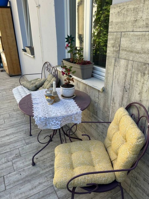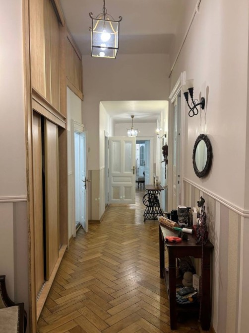 Розкішне сецесійне помешкання із оригінальними паркетами, панелями Буазері, дверними клямками та віконними шпінгалетами має 2 балкони: на фасад будинку з вітальні та з кухні у світле внутрішнє подвір‘я.