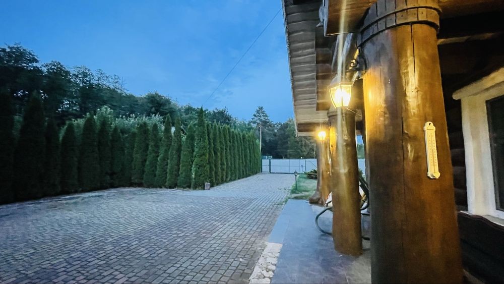 Продаж великої ділянки серед лісу з озерцем площею 50 соток та великим будинком з банею зі сруба Смерека. Будинок і баня повністю готові до проживання, на трансформаторі зараз власні 45 кВт з можливістю збільшення до 150 кВт .