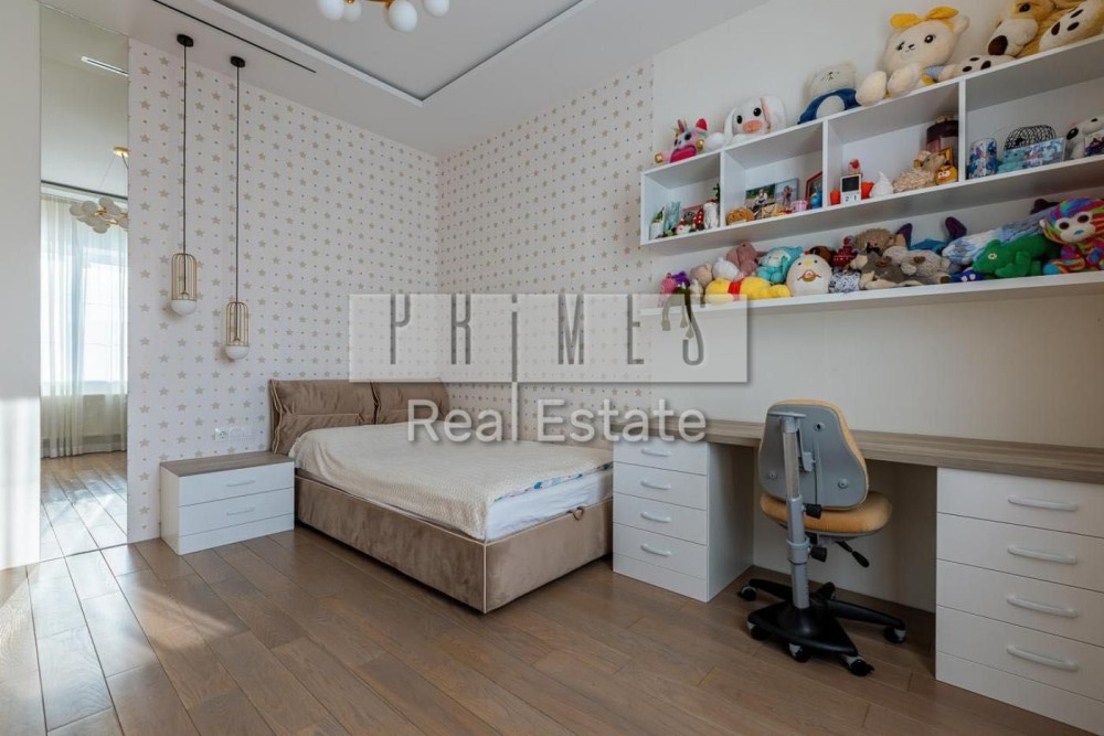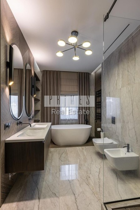 Виконаний дуже дорогий і якісний ремонт з використанням преміальних матеріалів. Висота стель — 3,20 м, дверні прорізи — 2,80 м. На підлозі натуральний дубовий паркет. Встановлені меблі Blanche, які залишаються новому власнику разом з усією вбудованою технікою, окрім особистих речей.