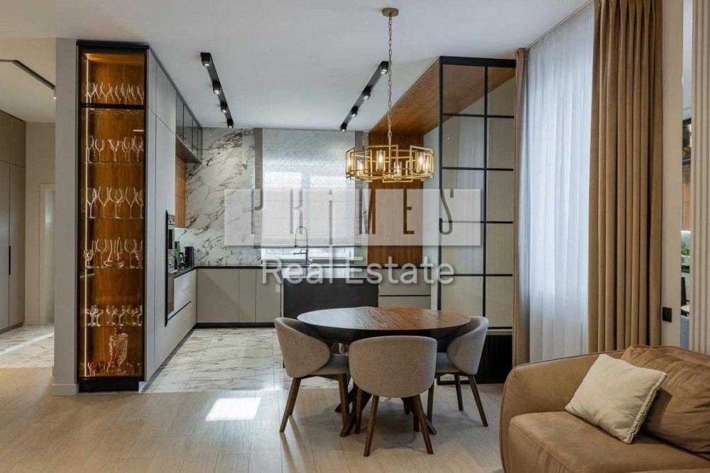 Виконаний дуже дорогий і якісний ремонт з використанням преміальних матеріалів. Висота стель — 3,20 м, дверні прорізи — 2,80 м. На підлозі натуральний дубовий паркет. Встановлені меблі Blanche, які залишаються новому власнику разом з усією вбудованою технікою, окрім особистих речей.