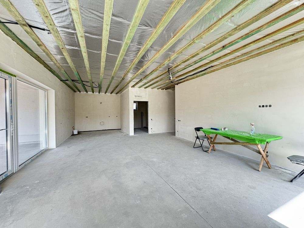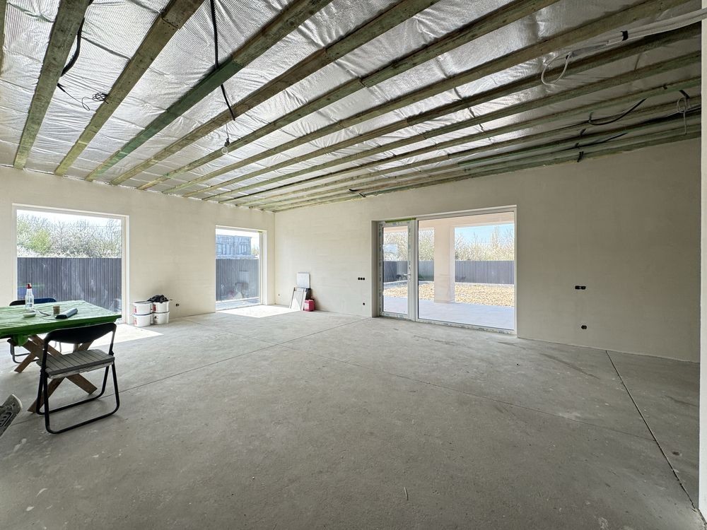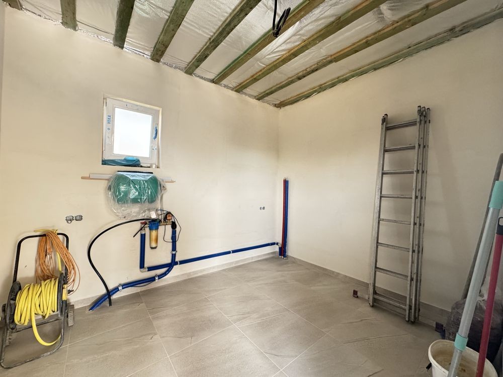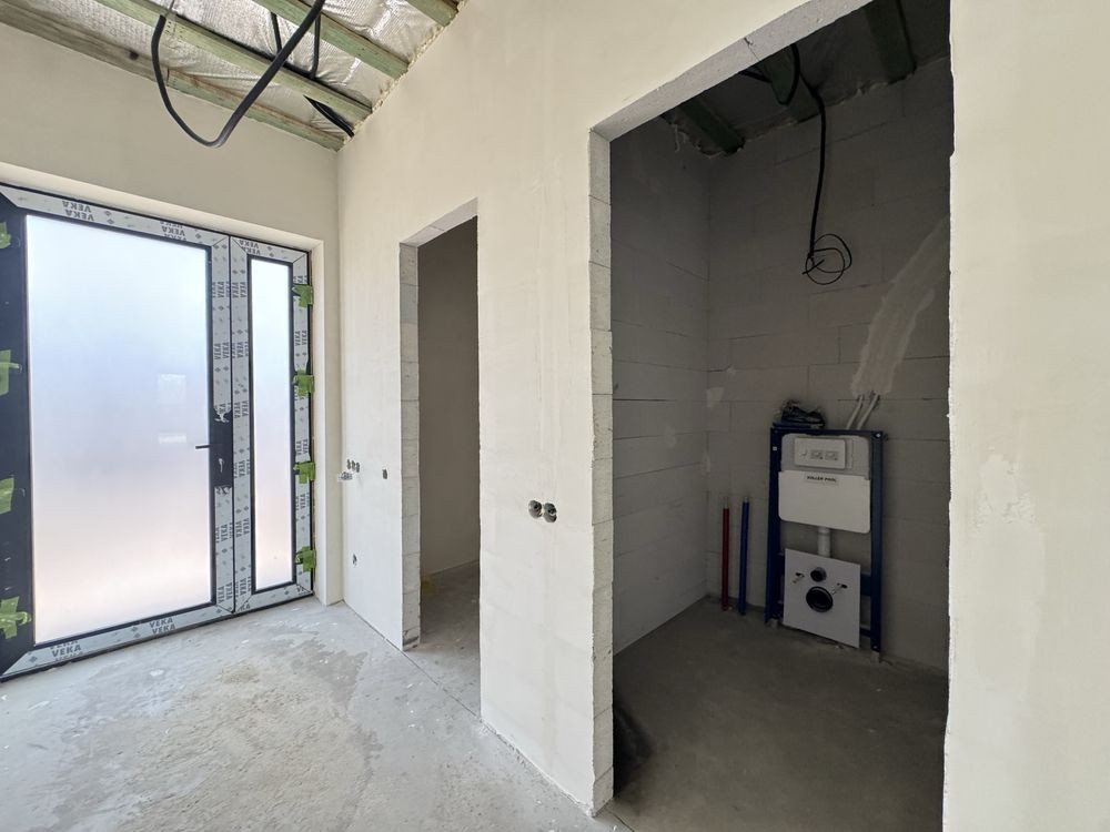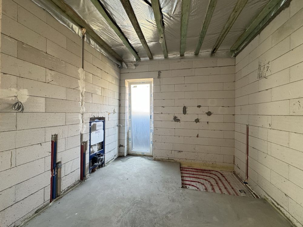 -Розведення електрики,трас кондиціонерів, чистова стяжка під нею тепла водяна підлога, змонтована гребінка та вся сантехніка з електро котлом! Стіни готові до фінішу та покраски!