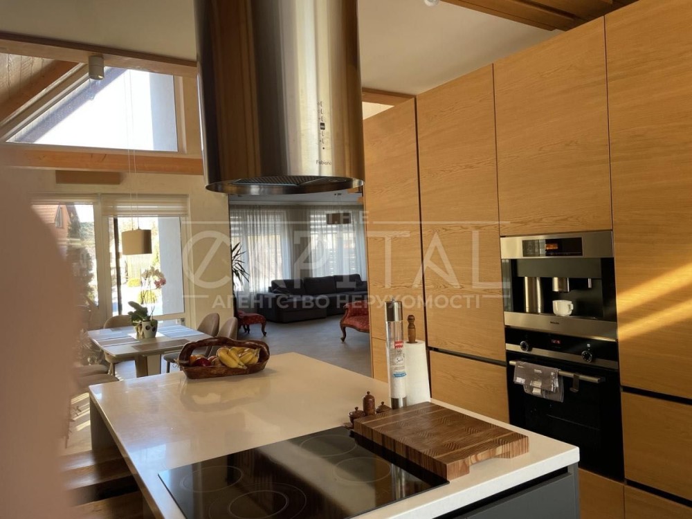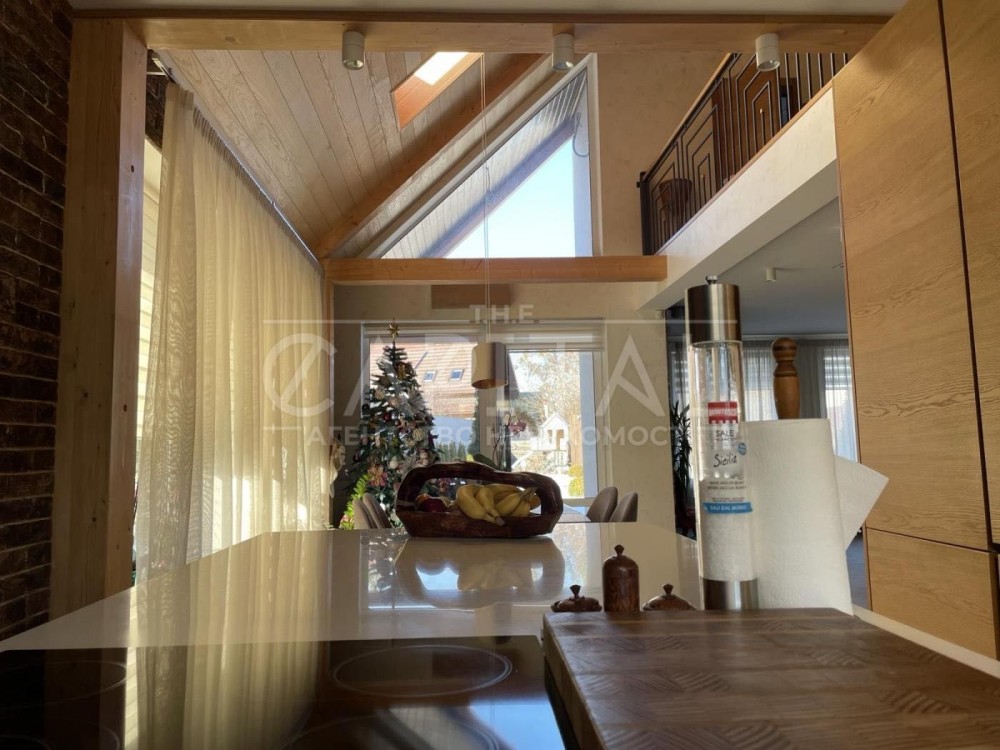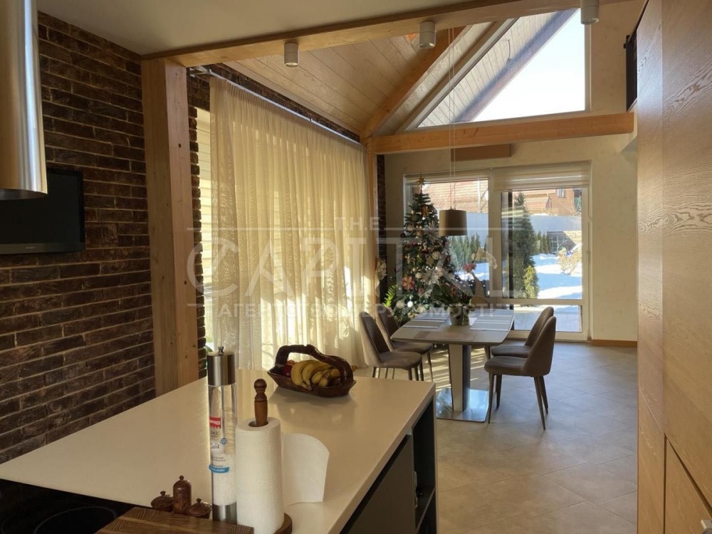- Простора кухня-вітальня з великими вікнами, які наповнюють приміщення природним світлом та створюють атмосферу затишку.