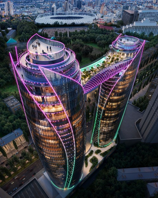 SKY BRIDGE – бігова доріжка на висоті пташиного польоту огинатиме кожен з трьох дахів веж.