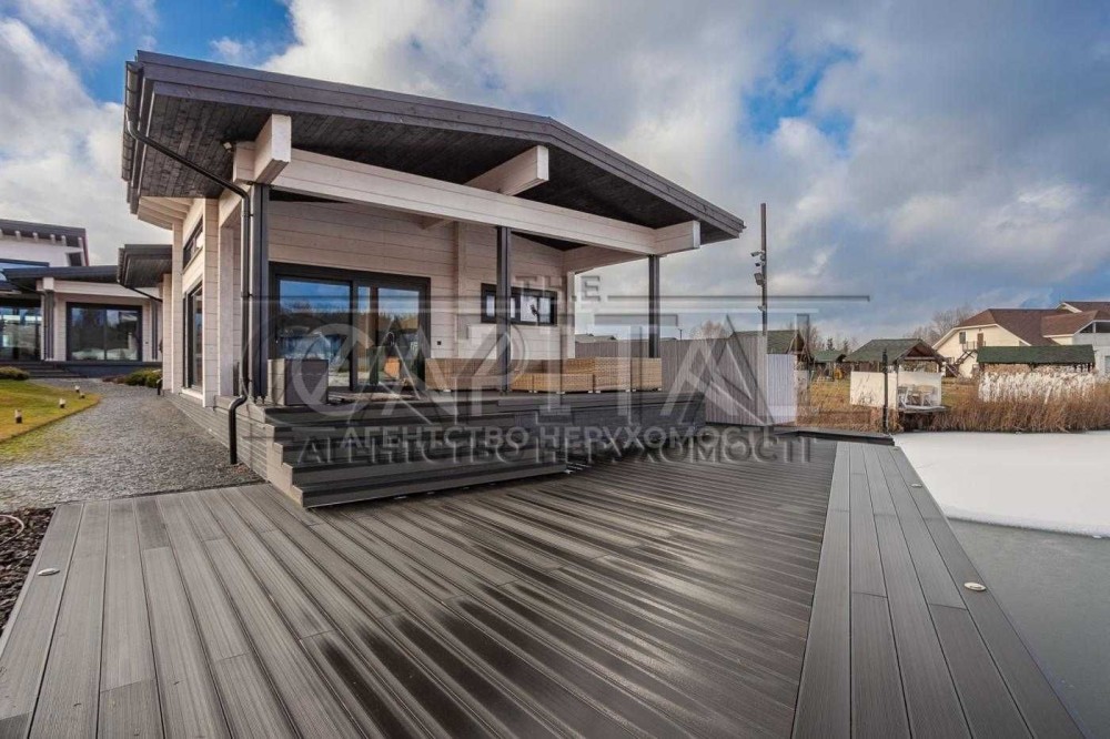 S = 700 м, складається з основного будинку, гостьового дому та окремої лазні/сауни.