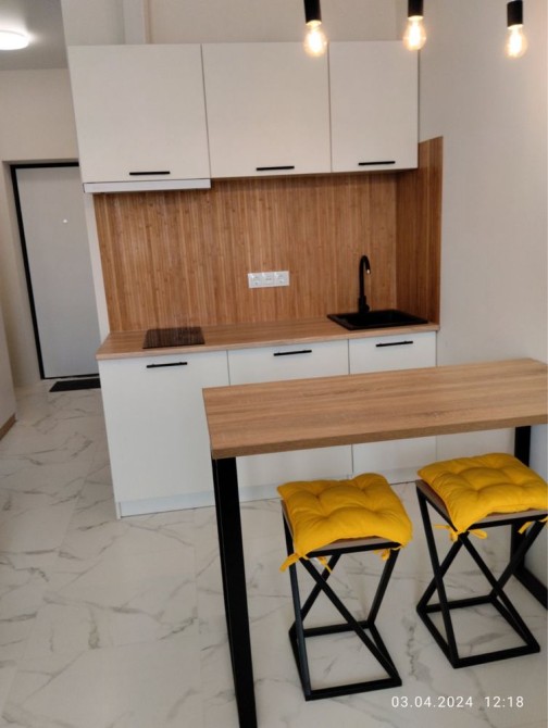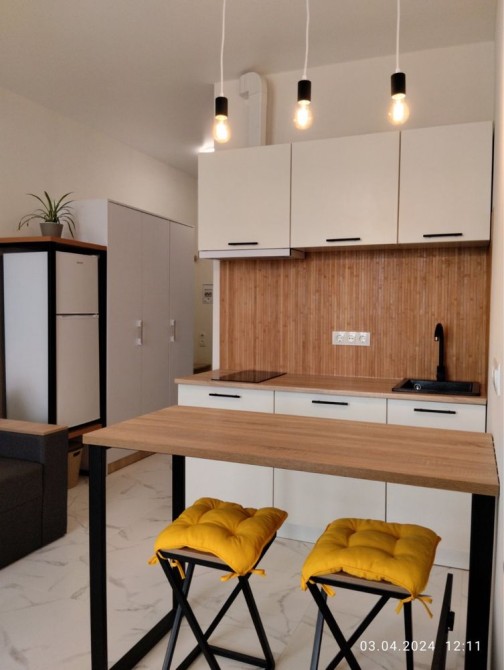 Квартира з сучасним ремонтом , укомплектована меблями: диван розкладний , ліжко, тумби, полички, стіл, стільці. Опалення індивідуальне електричне, санвузол суміжний з душовою.