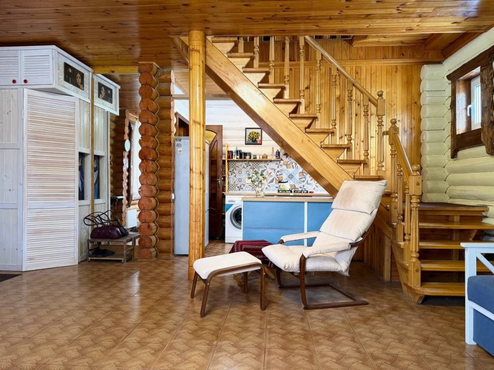 Продається стильний будинок з чистих дерев’яних брусів (кругляк) з якісним ремонтом. Живий аромат дерева, тепло і затишок у кожній деталі.