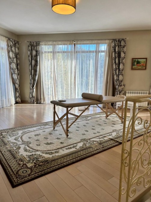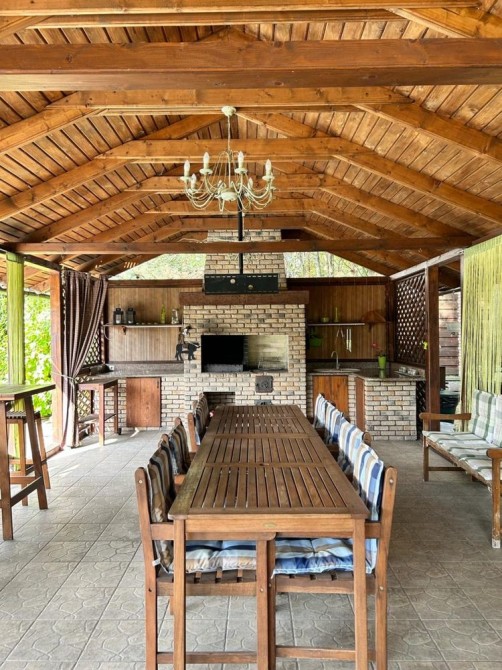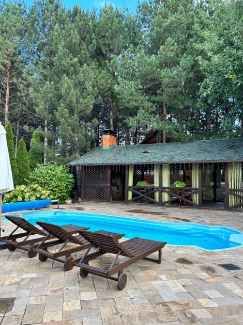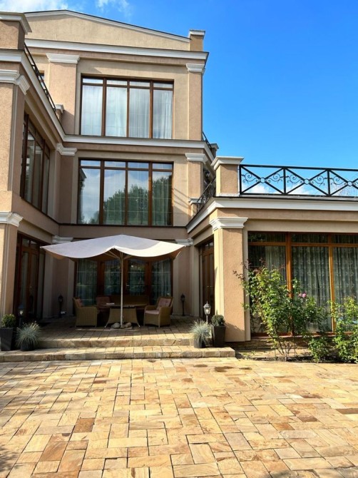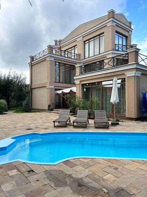 Пропонується до продажу елітний будинок у легкому класичному стилі, розташований в с. Козин, дамба, недалеко від центру міста Площа будинку становить 390 м2, на ділянці площею 22 сотки, що дозволяє насолоджуватися прекрасним повітрям та деревами. На території ділянки розташовані гостьовий будиночок з сауною, окремий будинок для охорони та літня кухня. Також є навіс на 3 автомобілі та критий басейн з підігрівом. Для забезпечення незалежності від електромережі встановлено генератор потужністю 25 кВт, а для економного опалення використовується тепловий насос.Характеристики будинку:Зона кінотеатру та діючий камін;Повністю мебльований із преміальними меблями та сантехнікою на замовлення;4 спальні кімнати з власними санвузлами;2 тераси, гардеробна, пральня/госп.блок.Додаткова інформація: Будинок має 3 поверхи, 6 кімнат, площу ділянки 22 сотки. Планування кімнат суміжно-роздільне. Газ підведений до вулиці. Система водопостачання включає свердловину для холодної води та електричний бойлер для гарячої води. Опалення забезпечується тепловим насосом, що забезпечує низькі витрати на опалення.Загальний стан будинку - дизайнерський ремонт. Є автономна електроенергія завдяки генератору. Інтернет забезпечується оптоволоконним з'єднанням.