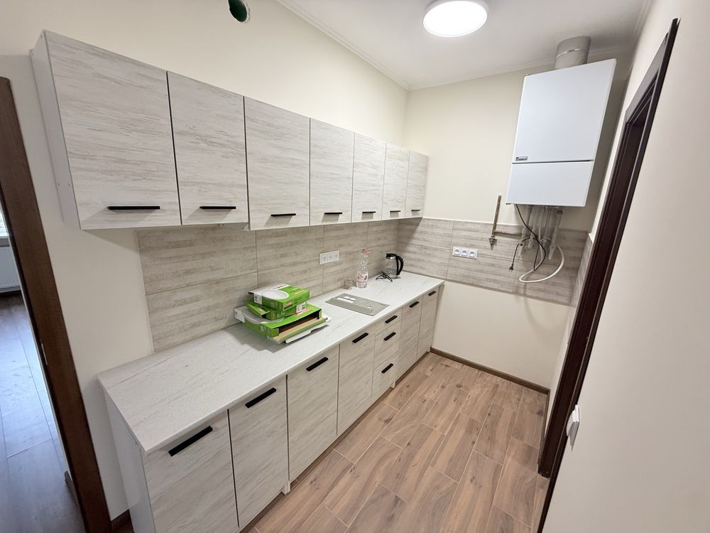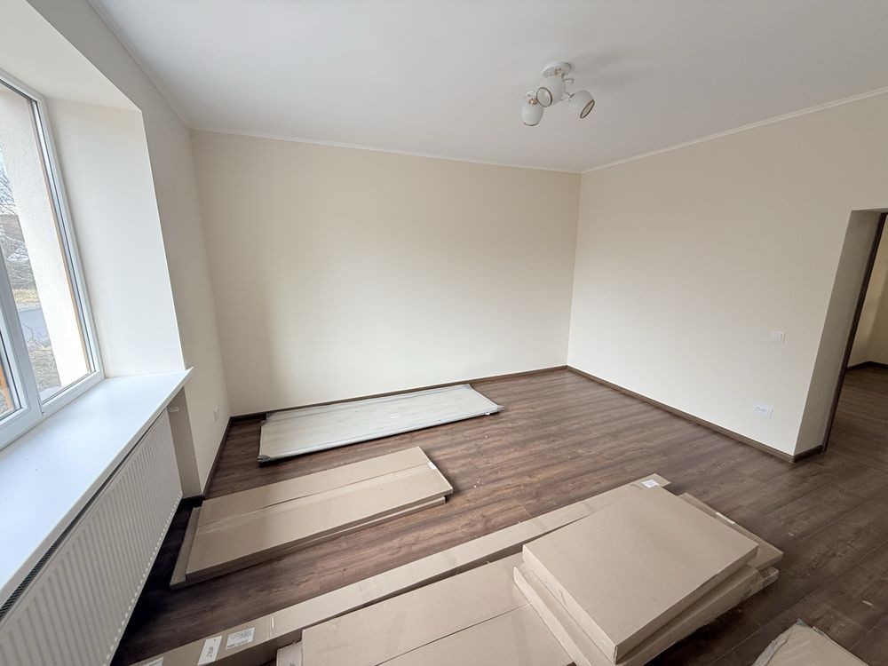 - нові меблі на кухні та в одній із кімнат (в розборі), готова повністю ванна кімната із санвузлом