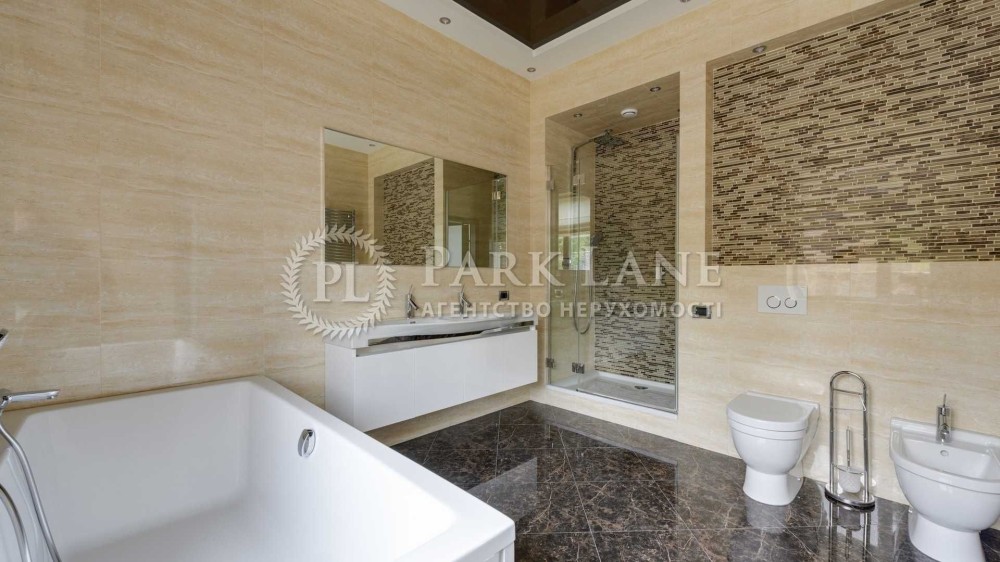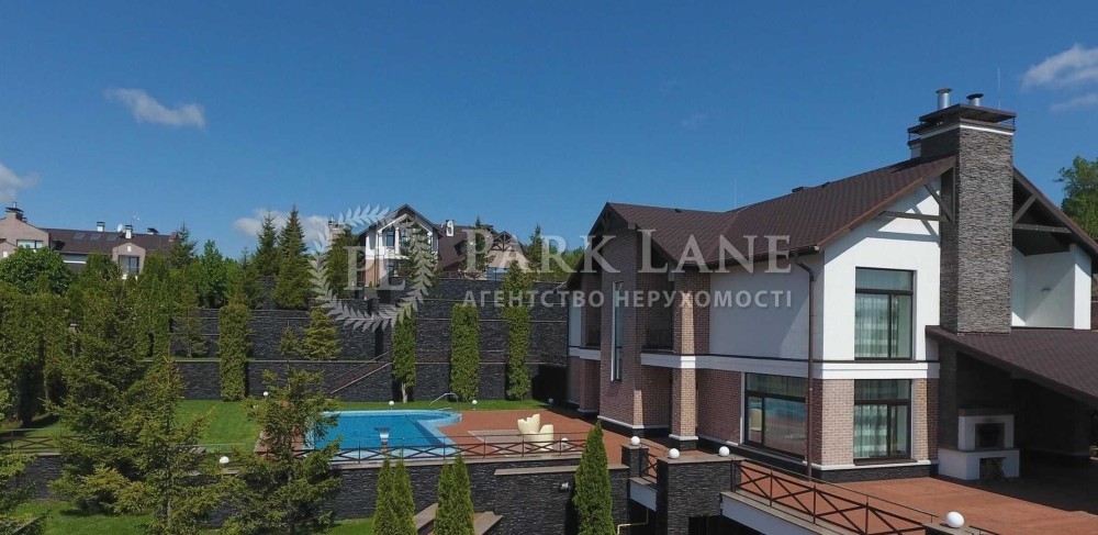 Сучасний будинок в котеджному містечку "Зелений гай", свіжий авторський ремонт, гостьова кімната з діючим каміном, кухня-студія, 5 спальних кімнат з санвузлами та гардеробними, SPA-зона з сауною та кімнатою відпочинку, гараж на 2 авто, цокольний поверх з великою гардеробною для сезонного одягу. Земельна ділянка 20 соток, газон, авто полив, басейн, окрема зона гриль. Будинок для охорони зі своїм сан.вузлом та душем.