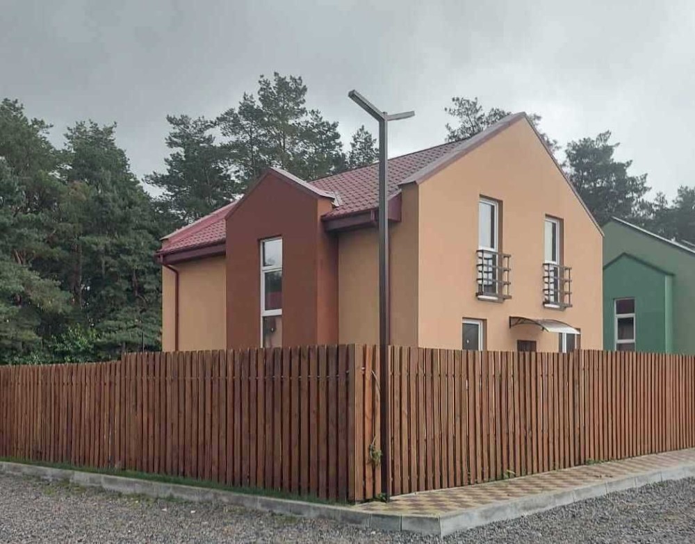 Будинки з виконаними фасадними роботами, всередині-під чистове оздоблення. У вартість входить: штукатурка внутрішніх стін, металопластикові вікна (п'ятимерні), розведення мідної електропроводки по всьому будинку. У будинки підведені всі комунікації: індивідуальна свердловина, власна система каналізації, електрика (15 кВт на будинок). Докладніше на сайті: sunnyvillage.com.ua/